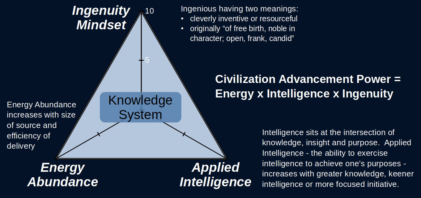 Mankind prospers whenever freedom-oriented individuals adopt an ingenuity mindset using insights into Nature's abundance to wisely apply intelligence towards well-being. Savvy, ingenious sovereigns who know how to responsibly hitch mind and machine to Nature's Wheelwork become tomorrow's leaders and innovators.